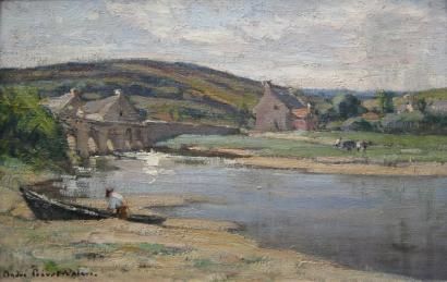 Paysage animé à la rivière