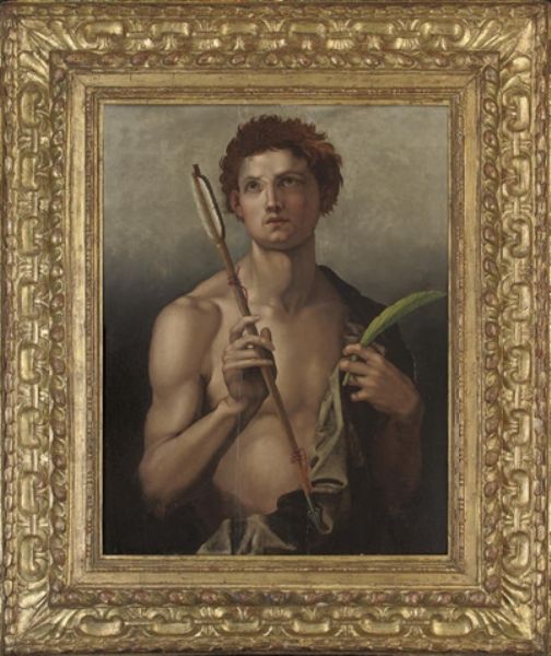 | Saint Sebastian with an arrow in his right hand and the martyr's palm in his left | |