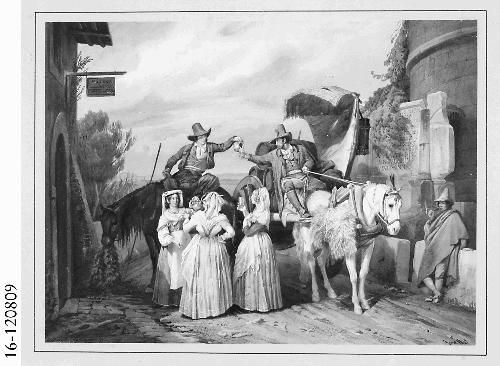 Auf der Ponte Lucano in Rom werden ein Kutscher u