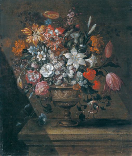 | Bouquet of flowers in a decorative metal vase / Un mazzo di fiori in un vaso decorato | |