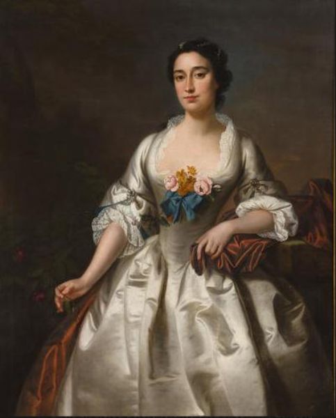 A portrait of a lady in a white dress, thought to be Mrs. William Wright