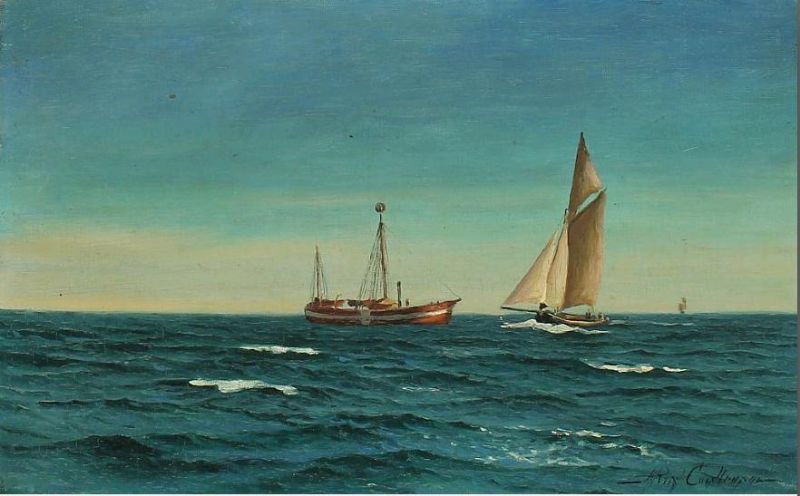 Seascape with lightship and sailing ships