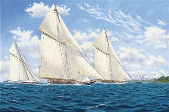| Britannia storming to leeward of White Heather (II), with Lulworth on an opposite tack astern, Cowes, 1923 | |