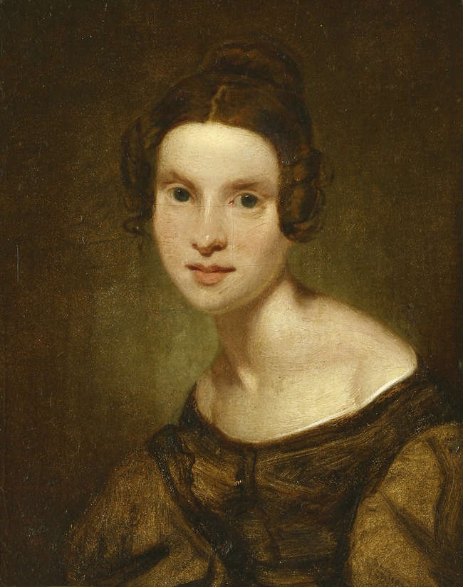 PORTRAIT OF A YOUNG LADY, HALF LENGTH, IN A BROWN DRESS