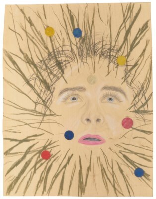 Graphite color pencil, pastel and painted wood collage on wood veneer