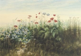 | A bank of poppies, cornflowers, marigolds and other wild flowers | |