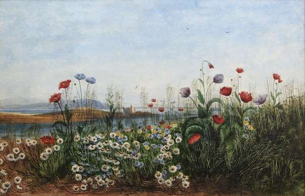 A View of a Castle Through a Bank of Poppies and Wild Flowers