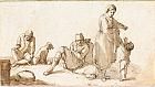 | FOUR PEASANTS: TWO SEATED ON THE GROUND WITH A DOG, AND A WOMAN PLAYING WITH A SMALL BOY | |