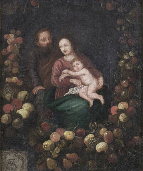 The Holy Family, within a garland of fruit