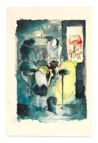 Watercolor and ink on paper