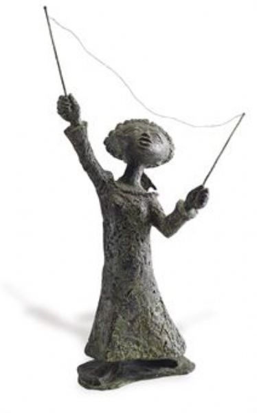Bronze with green patina and metal wire