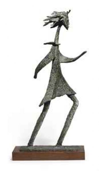 Bronze with green patina and wooden base