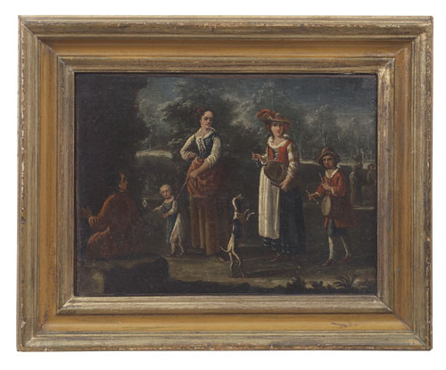 | Scena popolare con suonatrice di ghironda e tamburino | |