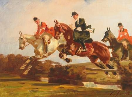 Reiter überspringen einen Wassergraben