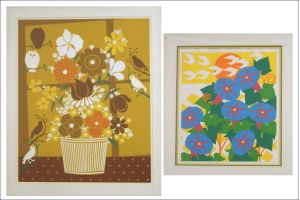 MORNING GLORIES WITH PLAYFUL DOVES.
