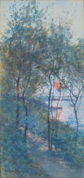 | Träd i solnedgång vid kust. Signerad Anna Gardell Ericson. | |