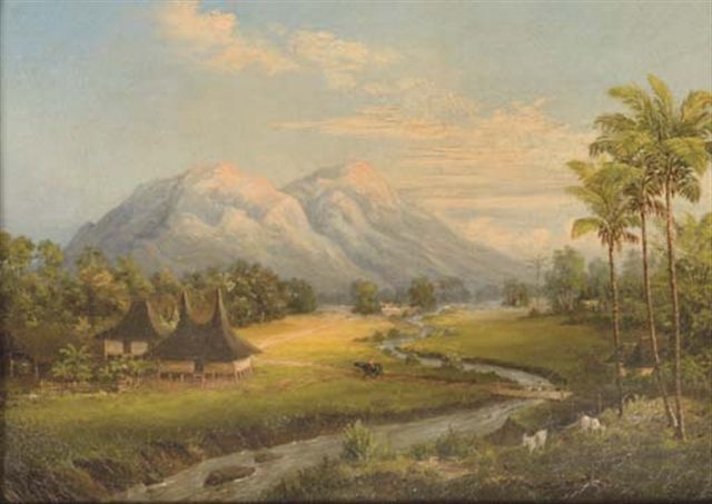 De Merapi vanuit Boekittinggi gezien - Merapi seen from Bukittingi