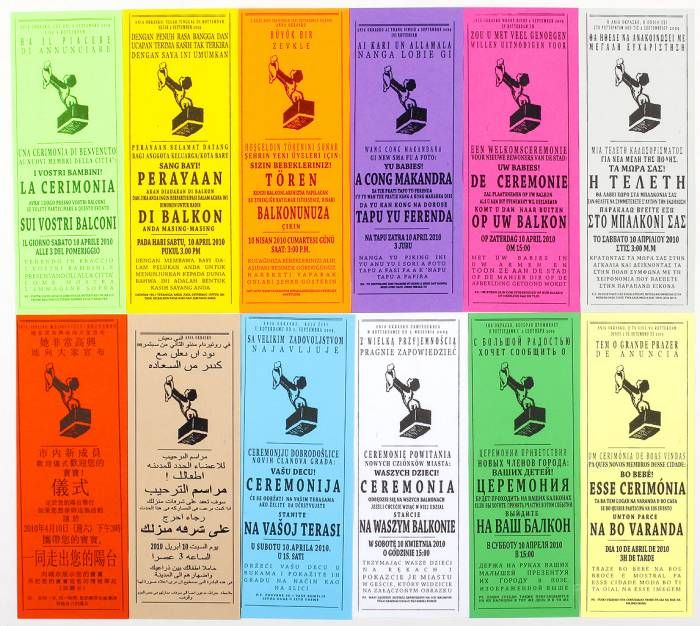 | Bez tytułu, 2009 Ulotki będące elementem aukcji BALCONY CEREMONY zrealizowanej w Rotterdamie (2010). | |