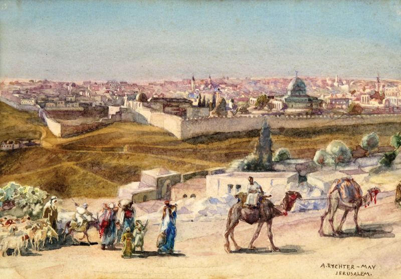 Jerusalem Landscape with Caravan of Camels
