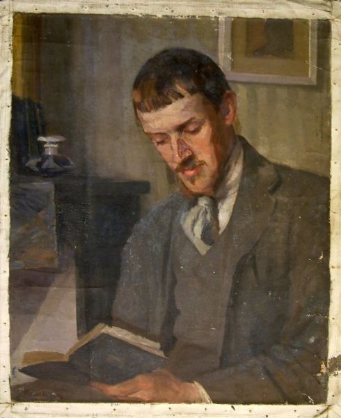Portrait of Ernest Yarrow-Jones reading a book