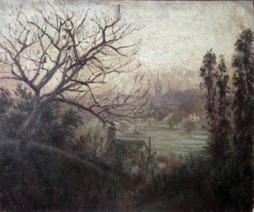 Faversham - The Church, Brewery, Chimney and town seen from a distance