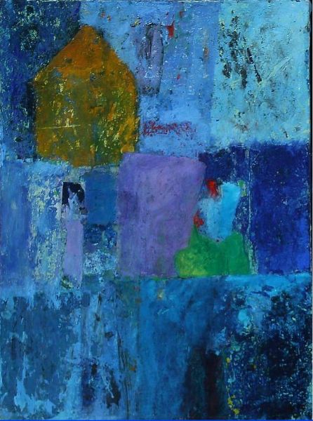 Oil on hand made paper laid down on canvas.