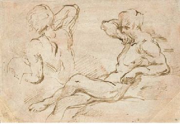 | Etude de deux hommes nus assis, l'un de profil, l'autre de dos | |