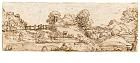 | Pen and brown ink, within slight brown ink framing lines, a trace of black chalk at the lower right corner | |