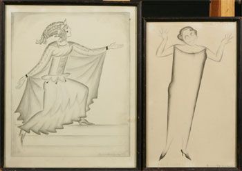 Föreställande skådespelerskan Pauline Brunius och en kostymskiss