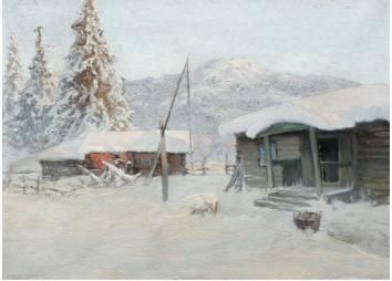 Gårdsexteriör i vinterlandskap
