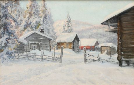 | Insnöade fäbodar, motiv från Moratrakten Dalarne | |