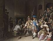 | A guardroom interior with a company of pikemen, card players and a woman and child | |