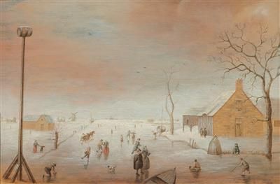 | Winterlandschaft mit Eisvergnügen auf einem Kanal | |
