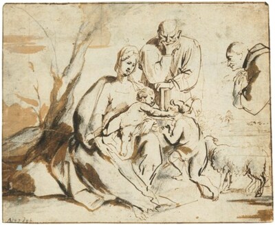 | The Holy Family with the infant Saint John Baptist adored by a saint or patron (recto); A group of standing men in robes (verso) | |