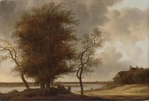 | A RIVER LANDSCAPE WITH FIGURES RESTING UNDER A TREE | |