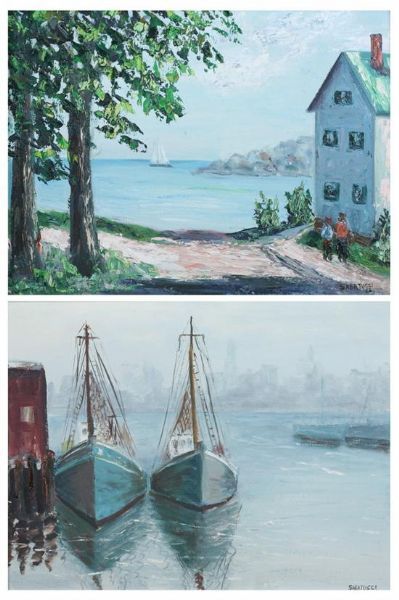 BOATS AT DOCK and VIEW OF SAILBOAT ALONG THE COAST
