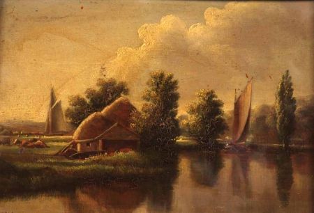 East Anglian River Landscape with Wherries and Farmstead