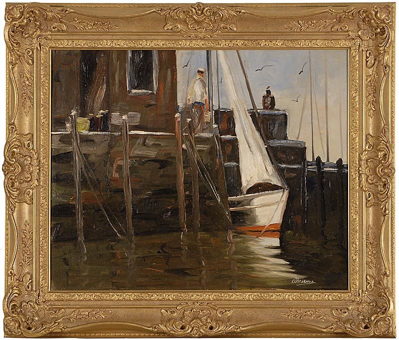 Oil on canvas board, framed