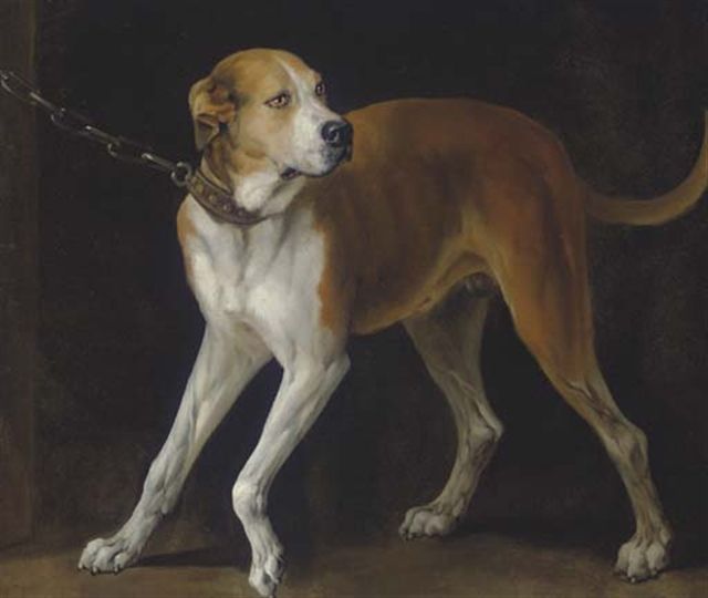 A Favorite Hound held by a Chain