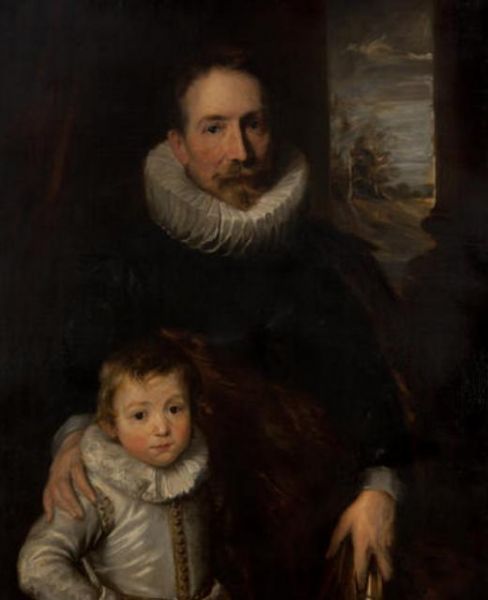| A portrait of a gentleman, said to be Joannes Woverius (1576-1636), with his son | |