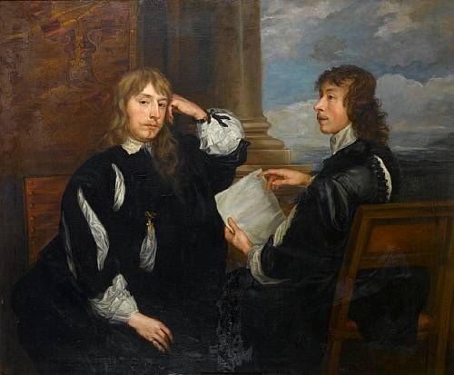 | Portrait of Thomas Killigrew and a gentleman, possibly William, Lord Crofts, seated before a gold curtain and a column | |