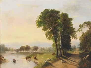 PASTORAL WITH SHEEP AND CATTLE WATERING;