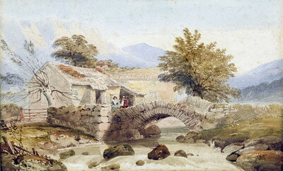 | Figures on a Stone Bridge Before a Country Cottage in a River Landscape | |