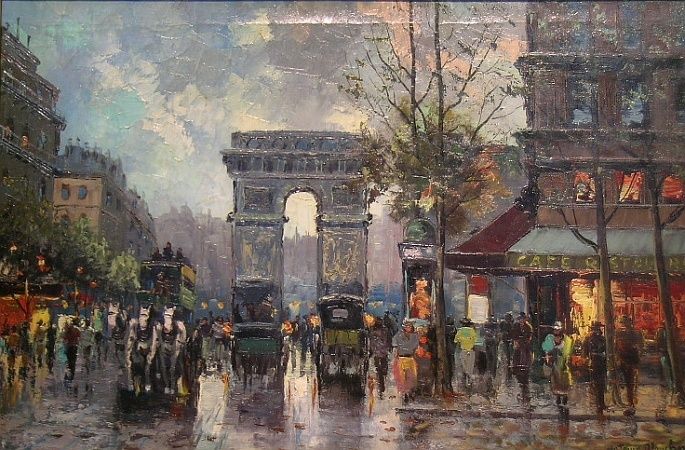 PARISIAN STREET WITH THE ARC DE TRIOMPHE