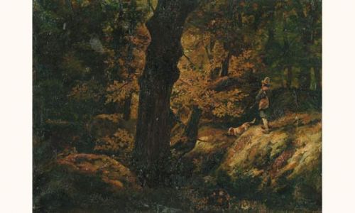 Chasseur et son chien dans un sous-bois