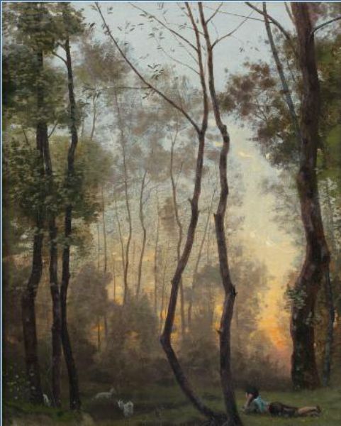 Jeune garçon se reposant dans une clairière au soleil couchant