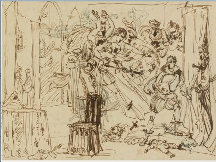 | Les victimes de la Saint-Barthélemy, dont l’amiral Coligny, apparaissent à Charles IX | |