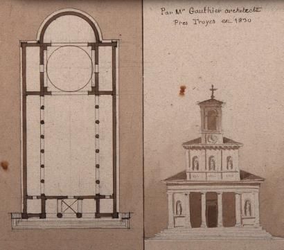 Plan et façade d'église