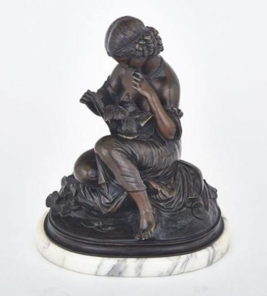 PATINATED BRONZE OF A YOUNG GIRL WITH A BIRD