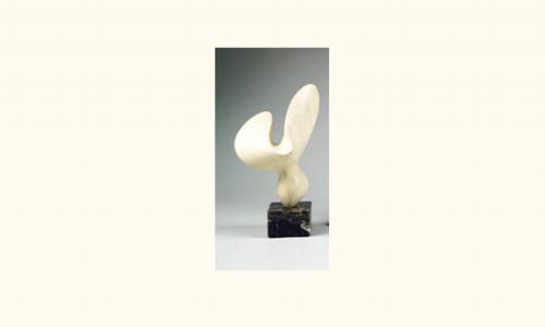 Sculpture de forme libre en résine blanche sur un socle en marbre